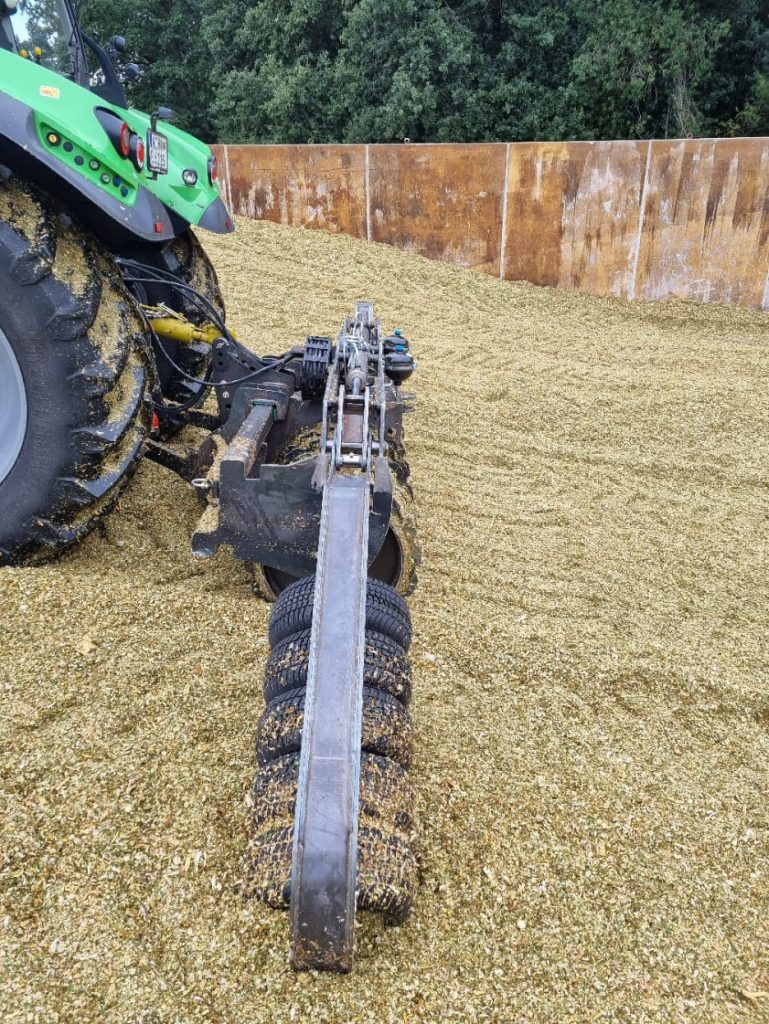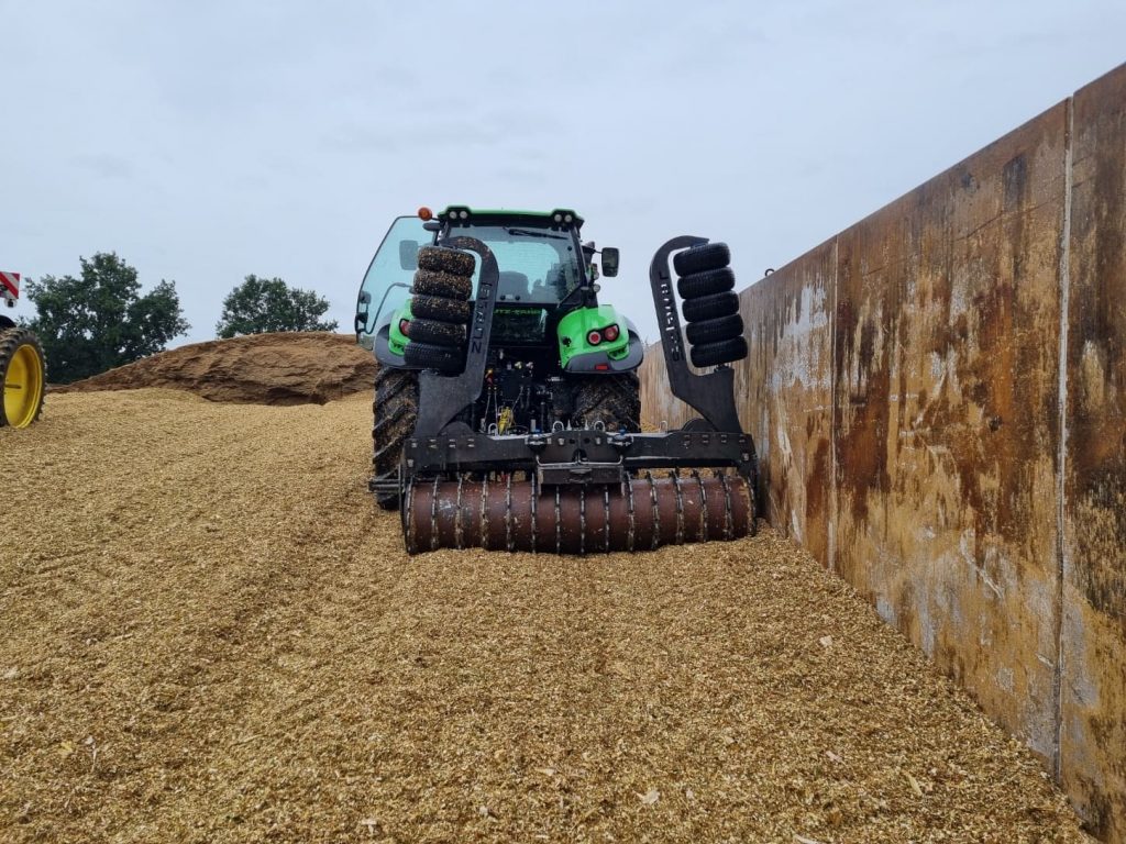 Unsere Silagewalze mit 3m Arbeitsbreite ist ideal zum verdichten des Silos. Die 40cm Verschiebeinrichtung erleichtert das Walzen nahe der Silomauer. Die Walze lässt sich mit Wasser befüllen was ein Ballastierung auf bis zu 3,2t ermöglicht um ein möglichst hohe Verdichtung zu erreichen. Zusätzlich ermöglichen die beiden Kantenverdichter an der rechten und linken Seite ein entspanntes Kantenwalzen.