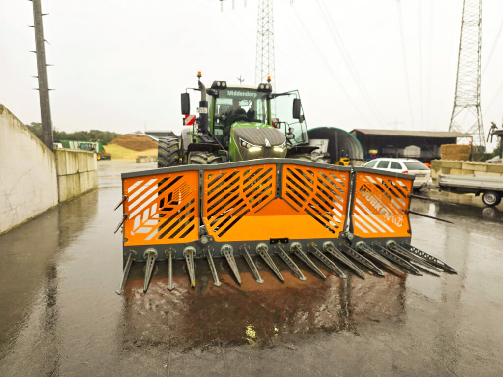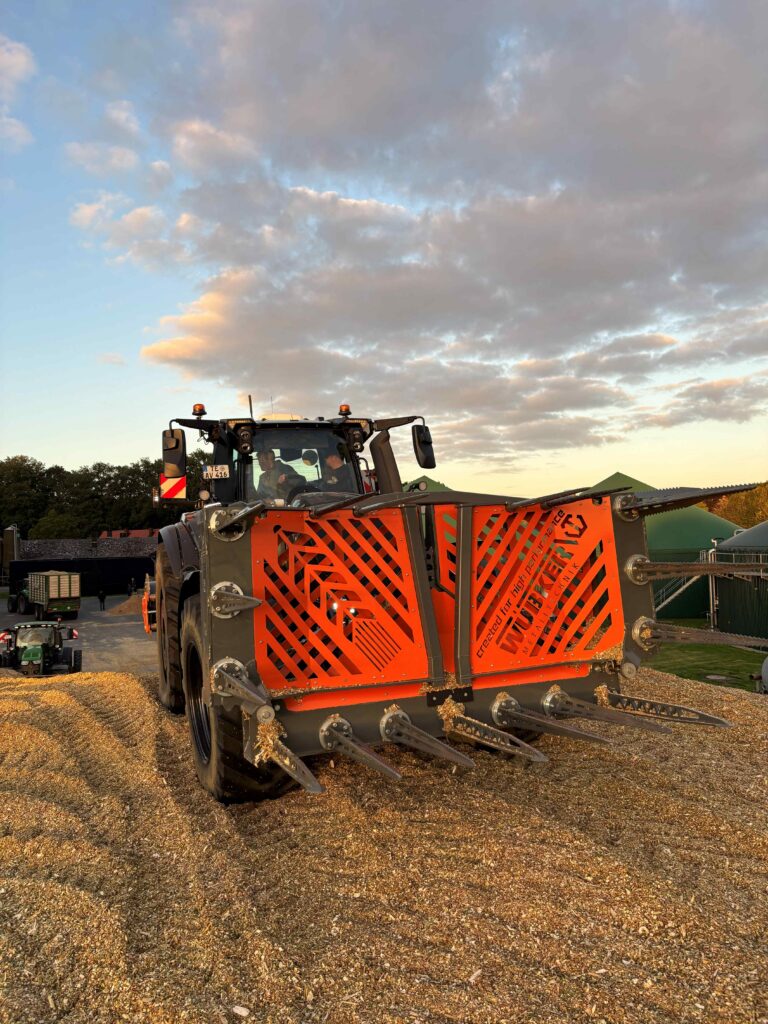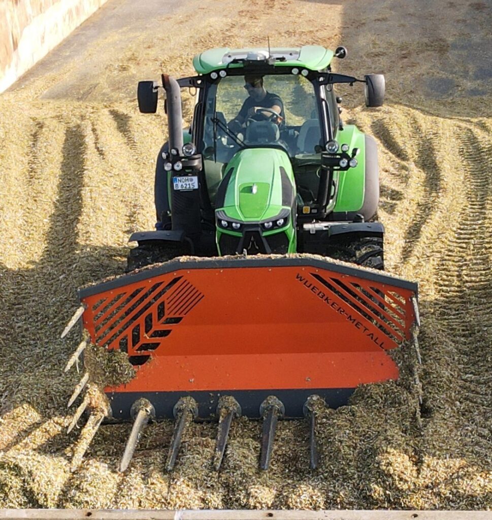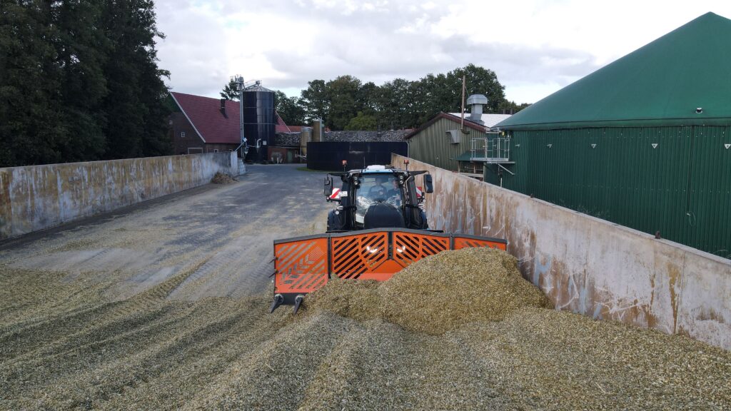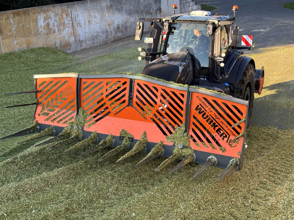 Die hydraulische Silagegabel mit 4,5m Arbeitsbreite ist die moderne Alternative zum herkömmlichen Siloschiebeschild.