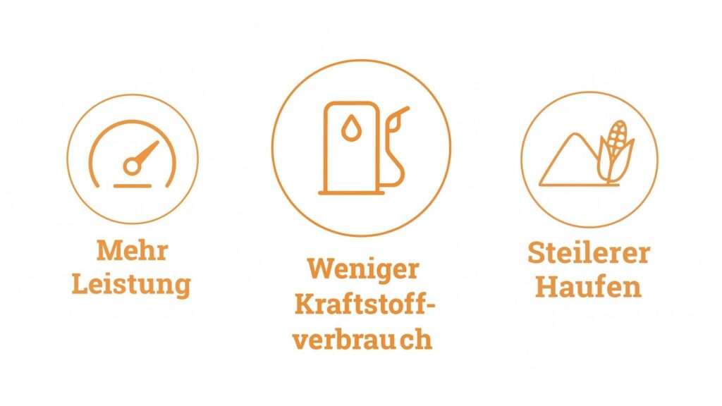 Dank rotierender Zinken wird die Silage getragen statt geschoben – das spart Kraftstoff, schont das Material und sorgt für eine gleichmäßige, präzise Verteilung im Silo.